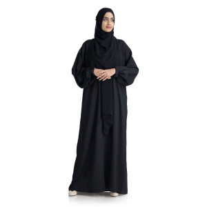 12. Light Weight Simple Black Closed Abaya with Double Layered Sleeves