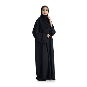 14. Light Weight Closed Black Abaya with Layered Frilled Sleeves